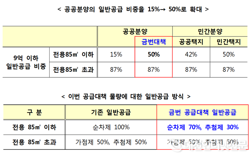 이번 개편되는 일반공급 비중과 일반공급 방식 표. (자료-국토부)