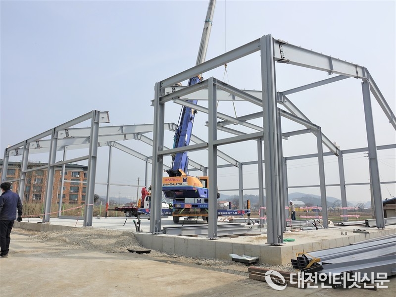 이달 말 완공을 앞두고 공사가 한창인 서부농협 친환경 두부 공장. [사진-대전인터넷신문]
