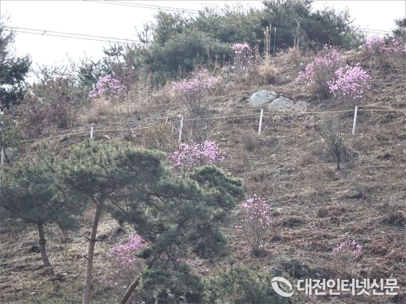 [대전인터넷신문=세종/박향선기자] 코로나 정국 속에도 세종시 장군산 영평사에는 봄의 전령사인 진달래를 비롯한 홍매화가 어여쁜 자태를 드러내며 영평사를 방문하는 불자들의 마음을 보듬어주고 있었다.