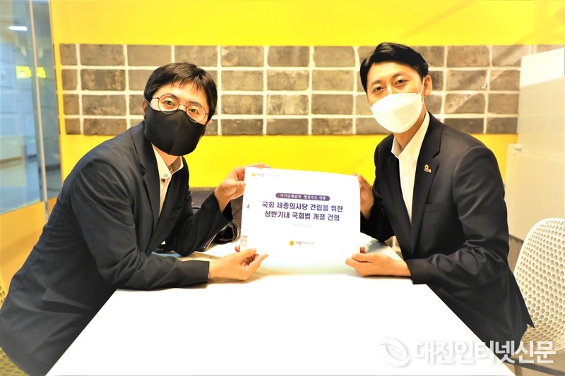 특히 이날 오후 이태환 의장은 1인 시위를 마친 후 이동학 더불어민주당 청년 최고위원과 복기왕 국회의장 비서실장을 만나 국회 세종의사당 설치의 필요성과 당위성에 대한 세종시의 입장을 전달 했다.