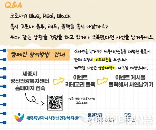 참여 방법은 오는 7월 4일까지 세종시 정신건강 복지센터 홈페이지를 통해 신청하면 되며, 채택된 사연의 대상자에게 소정의 기프티콘이 제공된다.