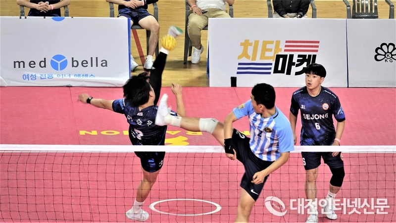 [대전인터넷신문=세종/최대열기자·단독] 14일부터 18일까지 대전시에서 세팍타크로 국가대표 선발을 겸한 시도대항전에서 세종시 하이텍고가 3인조 경기와 4인조 경기에서 모두 우승을 했다.
