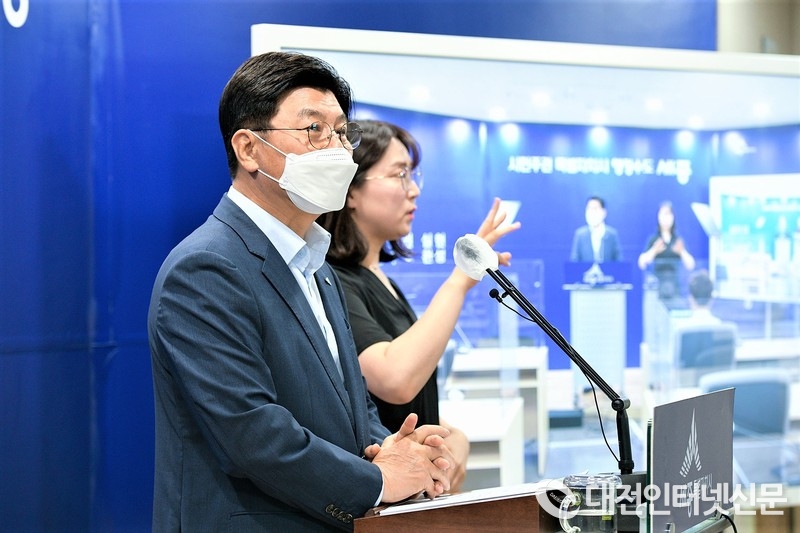 이춘희 세종시장이 브리핑을 하고 있는 모습(사진-세종시)