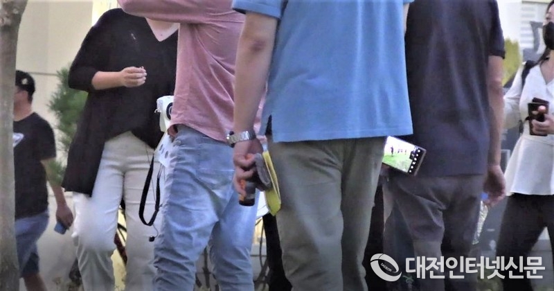 방역수칙 위반 여부를 떠나 공공기관으로서 최소한의 거리 두기를 시행해야하지만 세종문화재단 이사장이 시민 30~40명의 선두에 서서 인솔하는 모습. [사진-대전인터넷신문]