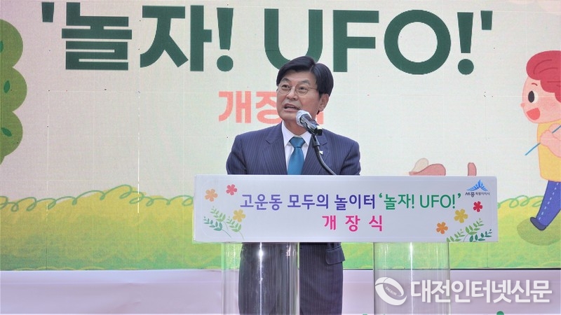 고운동 모두의 놀이터는 고운 뜰 공원 용지 2,000㎡에 ‘세종에 UFO가 출현했다’라는 주제로 주변환경과 지형을 최대한 유지하면서 어린이들의 상상력과 요구를 반영해 불시착한 UFO를 형상화했고 이날 개장식에서는 놀이터 콘셉트와 연계한 ‘드론 비행 퍼포먼스’도 선보여 눈길을 끌기도 했다.