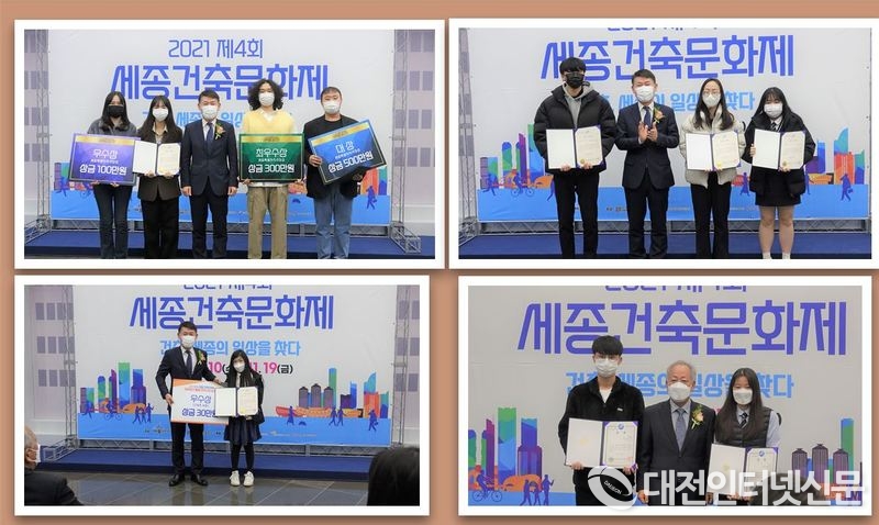 대학생 건축공모 대상에는 홍익대학교 전형빈·이정은이, 최우수상에는 명지대학교 박형선이, 우수상에는 충남대 하미래·김효진이, 고등학생 건축학교 우수상에는 보람고 안나연과 대전산업정보고 김수린이 우수상을, 장려상에는 대전산업정보고 이준호, 공공공간 활용 아이디어 공모 우수상에는 대전시 강자인이 이춘희 세종시장상을 받았다.
