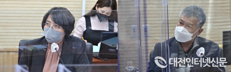 세종시 건축행정에 대한 지적을 하는 손현옥, 김원식 의원. [사진-대전인터넷신문]