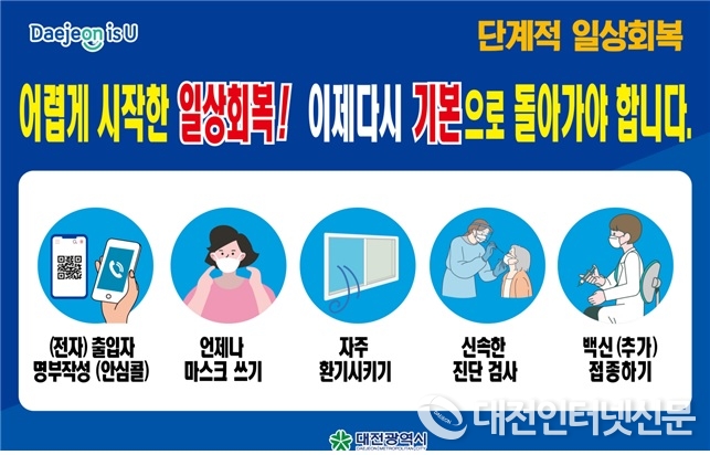 허 시장은 "그동안의 어려움을 잘 극복해왔던 것처럼 대전 공동체의 힘으로 지금의 고비도 슬기롭게 극복할 수 있다"며 기본 방역 수칙 준수 참여를 거듭 당부했다.