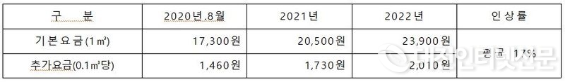 이에 따라 시는 정화조 청소 수수료 요금 현실화 연구용역을 근거로 한 ‘세종특별자치시 분뇨의 수집·운반 및 처리에 관한 조례’에 따라 2020년부터 2022년까지 3년간 인상계획을 반영해 시행 중이다.