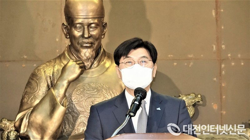 이춘희 시장이 추진위원회 발대식에 참석 대회 유치에 대한 결의를 밝히고 있다. [사진-대전인터넷신문]