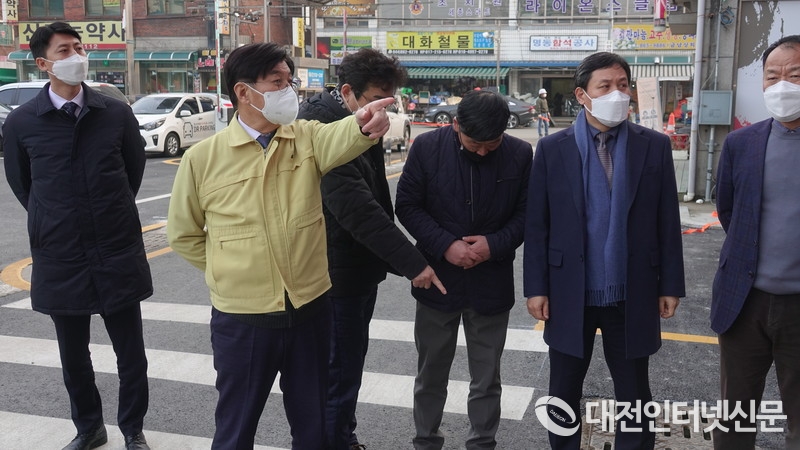 동서연결도로 현장을 방문한 이춘희 시장. [사진-대전인터넷신문]