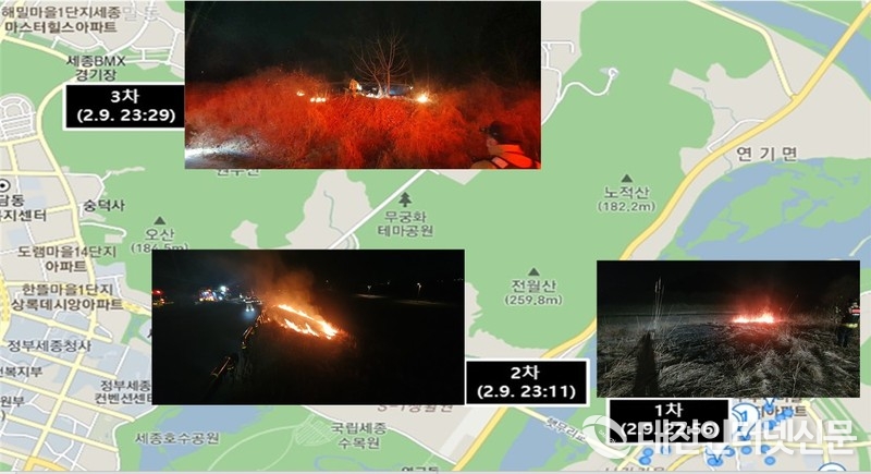 [대전인터넷신문=세종/최대열기자] 세종시 금강 변에서 방화로 추정되는 연쇄 화재가 또 발생했다.