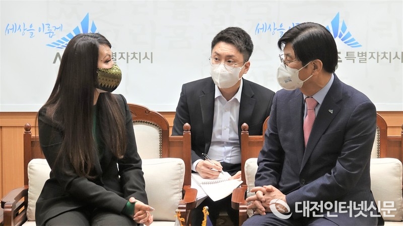 찌릉 보톰 랑세이 주한캄보디아대사와 환담하는 이춘희 시장. [사진-대전인터넷신문]