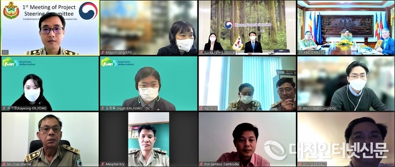 코로나 19의 확산으로 인하여 화상으로 개최된 이번 ‘제1차 한-캄보디아 자연휴양림 조성 운영위원회’는 대한민국 산림청 국제산림협력관과 캄보디아 산림청장이 양국 공동 의장으로 참석한 가운데 진행됐다.