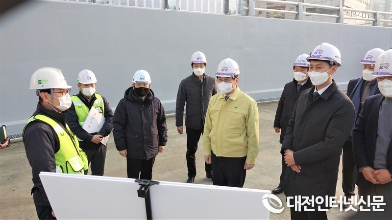 지난 1월 26일 조치원 동서 연결도로 공사 진행 상황을 점검하는 이춘희 시장과 이태환 의장. [사진-대전인터넷신문]