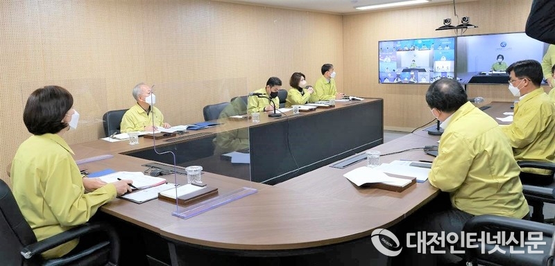 지난 3월 8일 세종시교육청에서 전국 학교의 새 학기 오미크론 대응 학사 운영 현황을 공유하고, 향후 학사 운영의 방향을 논의하기 위한 새 학기 오미크론 대응 교육부-시도교육청-교육지원청 비상 점점ㆍ지원단 회의를 주재하는 유은혜 부총리겸 교육부장관. [사진-대전인터넷신문 자료]