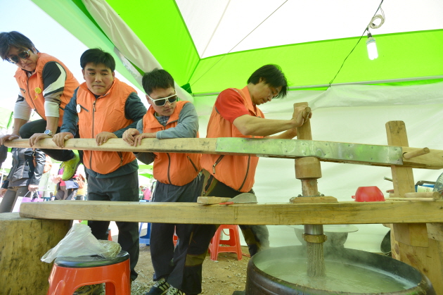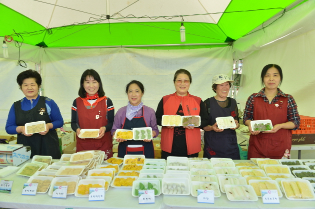 반짝 장터가 열리고 있는 선평역에서도 지역주민들이 낙동 농악으로 관광객을 즐겁게 맞이한다.