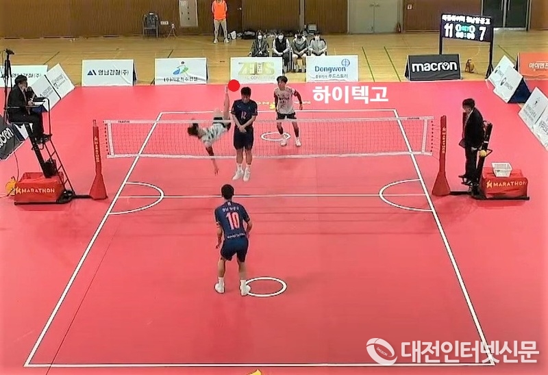 [대전인터넷신문=세종/최대열기자] 대전 한밭체육관에서 3월 16일부터 20일까지 열리는 2022 시·도 대항 전국 세팍타크로대회에서 세종시 하이텍고가 2인조 더블 이벤트에서 강호 경남 항공고를 21:9, 21:10, 세트 스코어 2대0으로 완파하면서 우승을 차지했다.