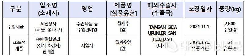 월계수잎 회수대상 제품 정보[사진-식약처]