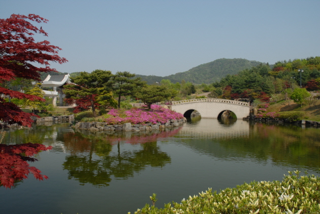 특히 수목원 연못 주변에는 수만 그루의 영산홍과 철쭉꽃이 앞 다퉈 꽃망울을 터뜨려 관람객들의 눈을 사로잡고, 엷은 초록색 옷을 갈아입은 2000여 종의 수목들은 야생화들과 어울려 이색 풍경을 연출하고 있다.