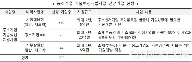 [대전인터넷신문=세종/최대열기자] 중소벤처기업부가 4월 18일 ‘중소기업 기술혁신개발사업’ 지원대상 유망 중소기업 292개사(546억원)를 신규로 선정하고 총 4천 277억 원을 지원한다고 밝혔다.