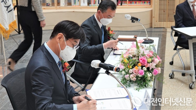 협약서에 서명하는 이춘희 시장과 이항진 여주시장. [사진-대전인터넷신문]
