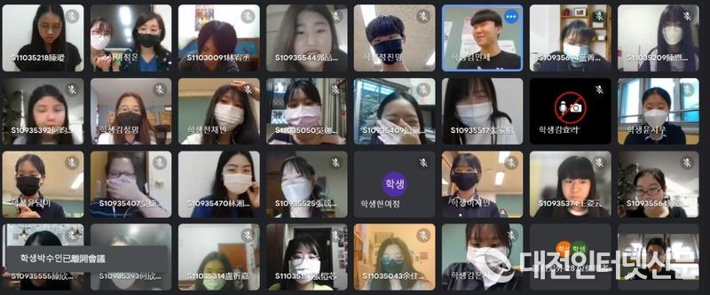 소담고등학교 학생들이 국제교류 실시한 화상수업에 참여하고 있다.[사진-세종시교육청]