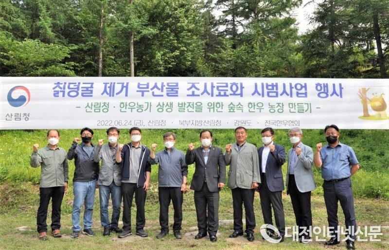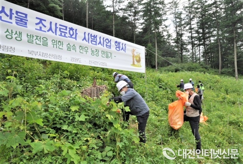 산림청은 지난 24일 강원도 홍천군 국유림 임지에서 전국한우협회·강원도·홍천군 관계자 등과 함께 칡덩굴 제거 부산물 조사료화 시범사업 행사를 개최했다고 밝혔다.
