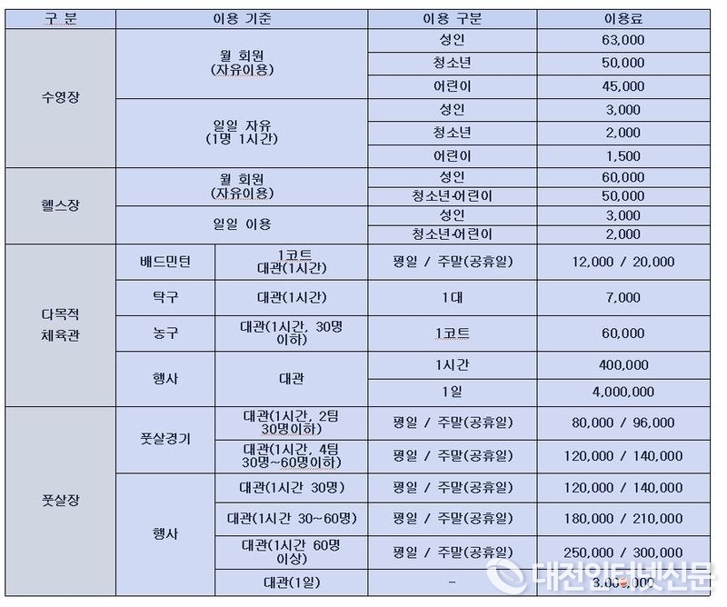 정부세종청사 체육관 시설이용료[자료-행복청]