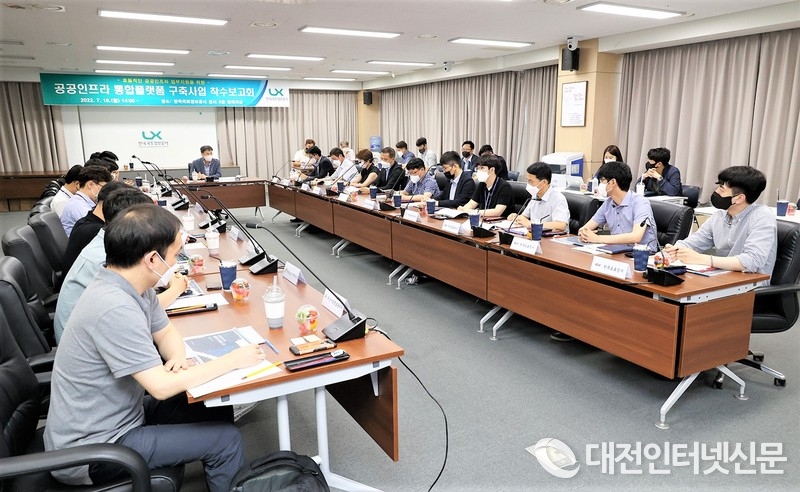 7월 18일 LX한국국토정보공사 본사 회의실에서 국가 SOC사업의 토지보상 업무를 지원하기 위한 '공공인프라 업무 통합관리 플랫폼 구축사업' 착수보고회가 진행되고 있다. [사진-LX제공]