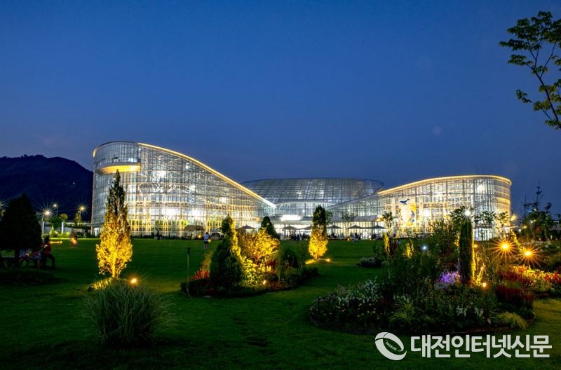 오는 8월 27일까지 야간개장을 실시하는 국립세종수목원 사계절전시온실 전경[사진-국립세종수목원]