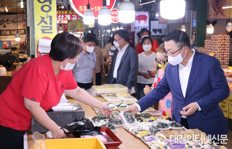 [대전인터넷신문=대전/백승원 기자] 이장우 대전시장은 28일 정림동 자연재해 취약지역을 방문해 집중 호우 대비 재난안전 관리상황을 점검하고, 도마큰시장을 찾아 민생 생활물가 동향과 시장 상인들의 애로사항을 청취했다.