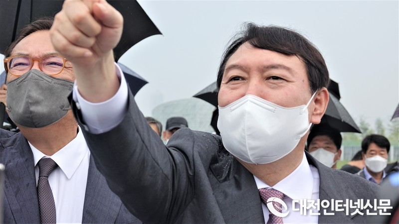 지난해 8월 윤석열 대통령이 대선 후보 시절 정진석 현 국회부의장과 국회세종의사당 예정부지를 방문해 살펴 보고 있는 모습. [사진-대전인터넷신문]