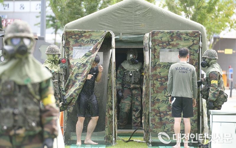 시는 상황 발생과 동시에 화생방 정찰 차량, 정찰조를 투입하고 세종시경비단과 함께 오염환자 구조하는 한편, 32사단 화생방지원대·세종소방서가 해당 지역에 대한 제독을 실시하는 과정으로 진행됐다.