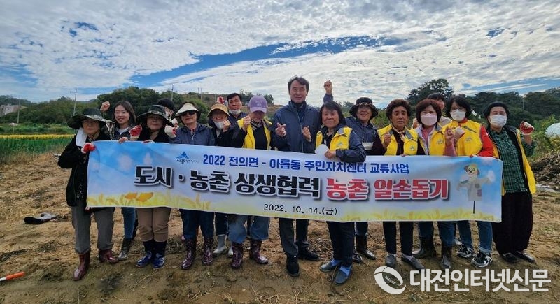 윤혜란 전의면 주민자치 회장은 “수확의 계절인 풍성한 가을 아름동 주민자치회와 함께 농촌일손돕기 봉사활동을 추진해 더욱 뜻깊은 시간이 되었다”라며 “앞으로도 주민자치회 간 다양한 교류의 기회를 통해 서로 소통하며 도농 상생 협력을 이뤄나가길 기대한다”라고 말했다.