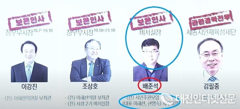 사진과 약력은 최종준 전 비서실장이고 실명은 현 세종도시교통공사 사장인 배준석으로.....