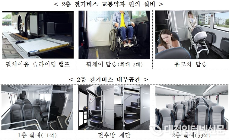 아울러, 2층 전기버스는 국산 좌석버스 중 유일하게 저상버스 형태로 제작되어 교통약자 이동편의 제고에도 큰 기여를 할 것으로 기대된다.