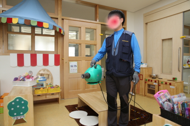 ▲ 세종시에서 메르스를 예방하기 위해 휴업에 들어간 한 유치원이 전문업체에 의뢰해 시설 방역을 실시하고 있다.