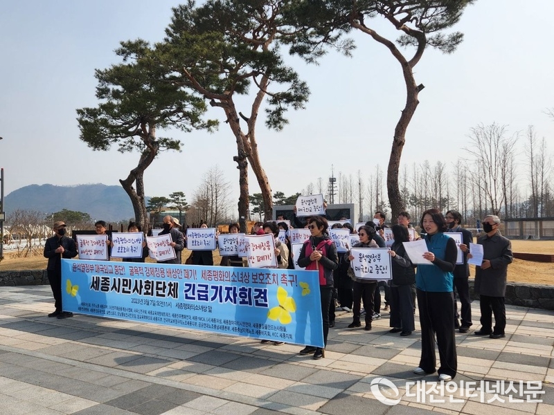 같은 날 평화의 소녀상 앞에서 세종시민연대 등 지역 18개 단체는 '소녀상 보호조치'를 촉구했다. [사진-대전인터넷신문]