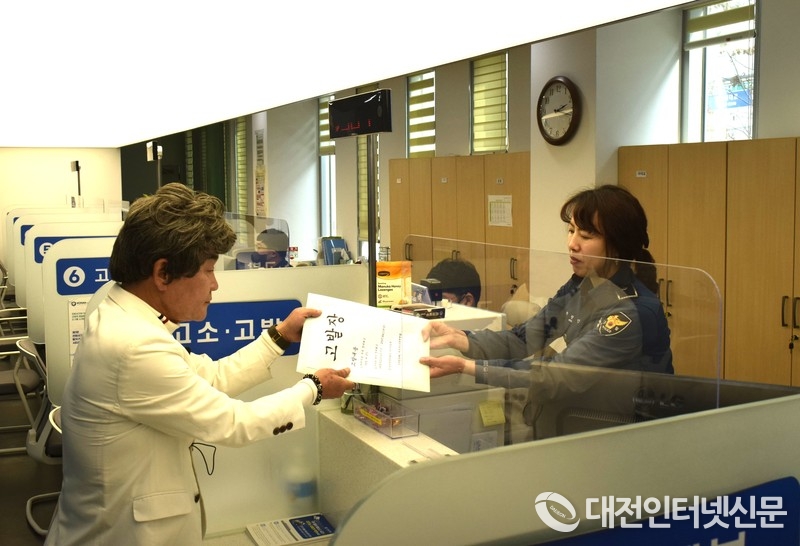 고발장을 접수하는 오 대표의 모습. [사진-대전인터넷신문]