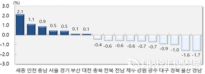 2월 시도별 순 이동률에서도 세종(2.1%), 인천(1.1%), 충남(0.9%) 등이 순 유입된 반면, 경남(-1.7%), 울산(-1.6%), 경북(-1.0%) 등에서는 순유출된 것으로 나타났다.