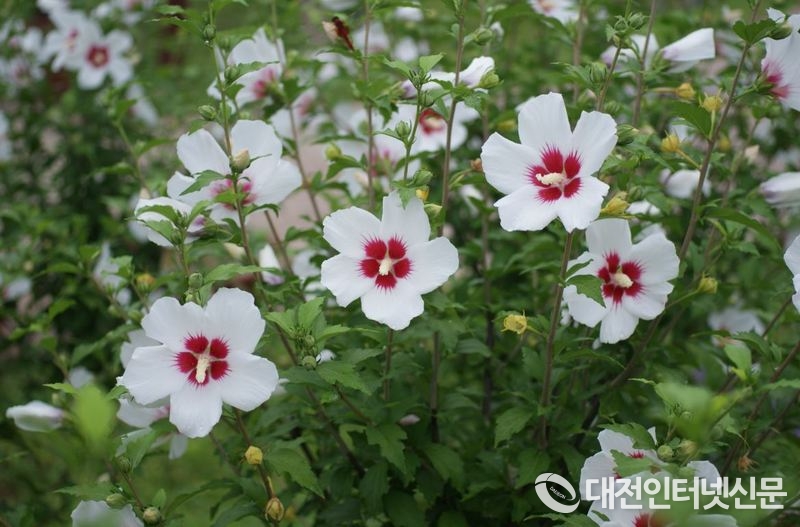 산림청과 엘지(LG)상록재단이 나라꽃 피는 학교 만들기에 나섰다.[칠보무궁화꽃 사진-산림청]