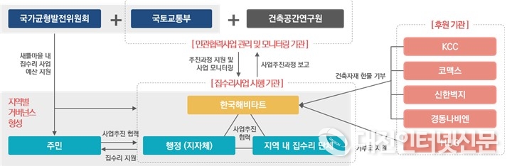 이번 함께 공모를 추진하는'민관협력형 노후주택 개선사업'은 취약지역 개조사업 지역 중 추가적인 지원이 필요한 지역을 대상으로 정부와 공공기관, 민간기업, 비영리단체 등이 함께 협력하여 집수리를 집중적, 전문적으로 지원하는 취약지역 개조사업의 연계사업이다. '민관협력형 노후주택 개선사업'이 시행되면 취약지역 개조사업의 주택 정비 예산과 민간기업 후원을 집수리에 함께 활용할 수 있으며, 세대별 집수리 범위 진단, 후원기업 자재 사용, 전문 시행기관의 공사관리, 에너지 효율진단 등이 포함된다.