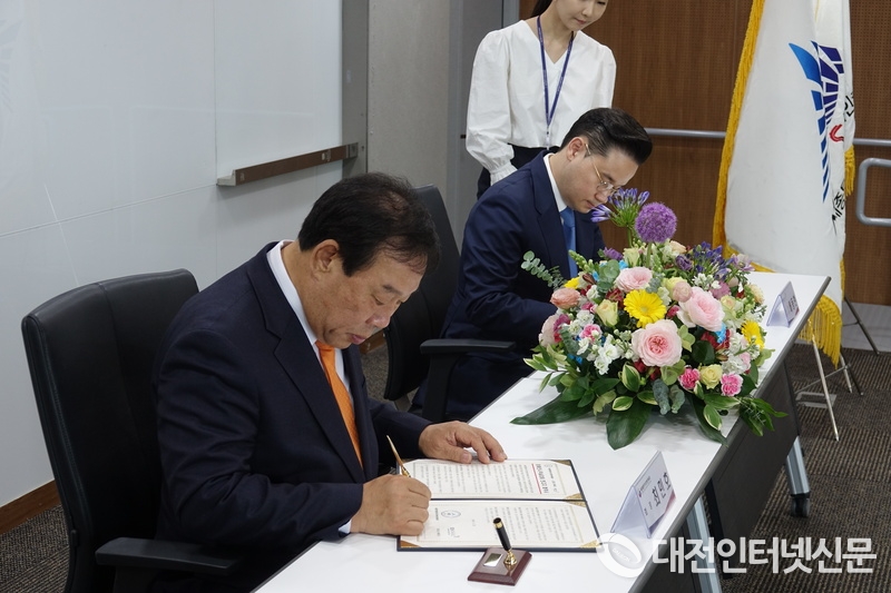 이날 업무협약을 체결한 최민호 세종시장(좌)과 배동현 BDH 파라스 이사장의 모습. [사진-대전인터넷신문]