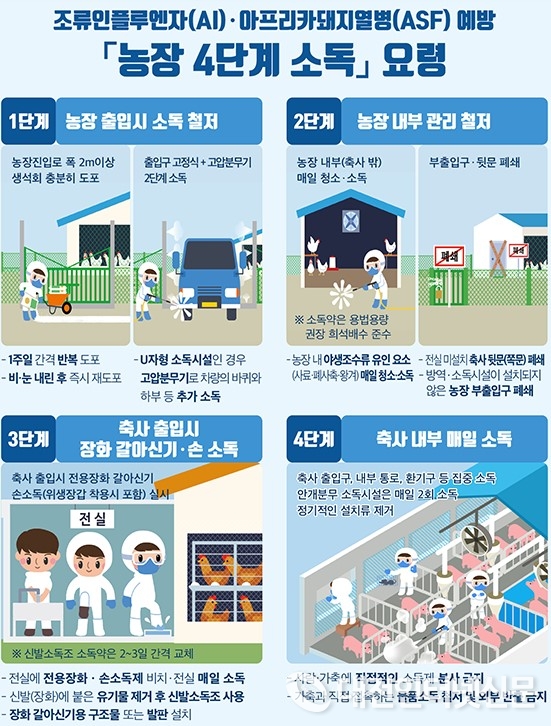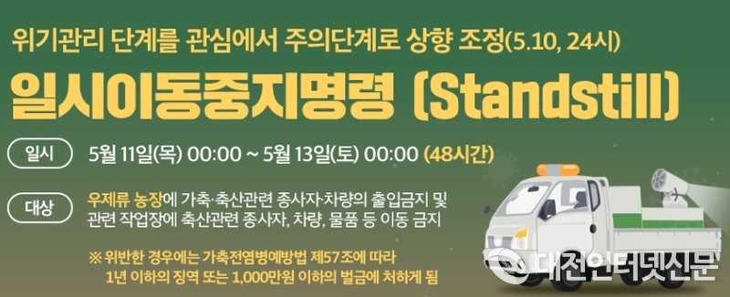 한편, 세종시는 청주 발생 농장과 차량 이동 등 역학적으로 관련이 있는 관내 9개 농장에 대해 2주간 이동을 제한하고, 임상 예찰, 항체검사, 긴급접종을 실시하는 등 차단 방역을 강화할 예정이다.