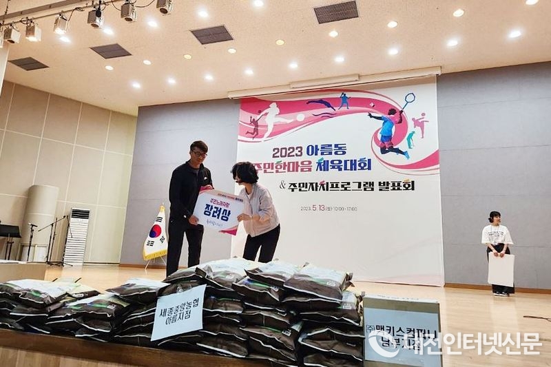 한편, 아름동은 지난 13일 오전 10시부터 오후 5시까지 아름동 복컴, 오가낭뜰공원, 아름 스포츠센터 일원에서 게이트볼, 배구, 배드민턴, 수영, 족구, 풋살, 탁구 등 7개 종목에 대해 예산 2,700만원과 경품 협찬을 투입, 주민화합을 도모한 바 있다.