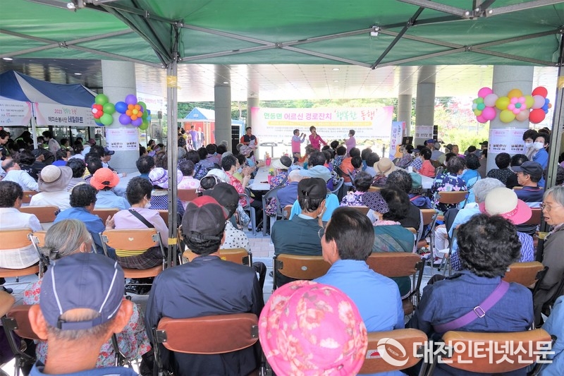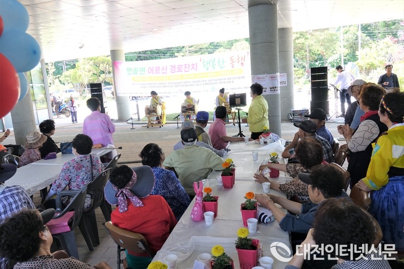 연동면 어르신 경로잔치에 어르신 150여 명이 참석, 공연을 관람하고 있다. [사진-대전인터넷신문]