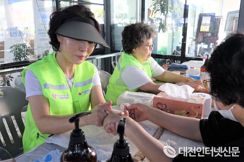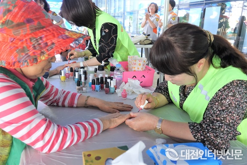 세종시자원봉사센터 전문봉사단의 네일아트. [사진-대전인터넷신문]