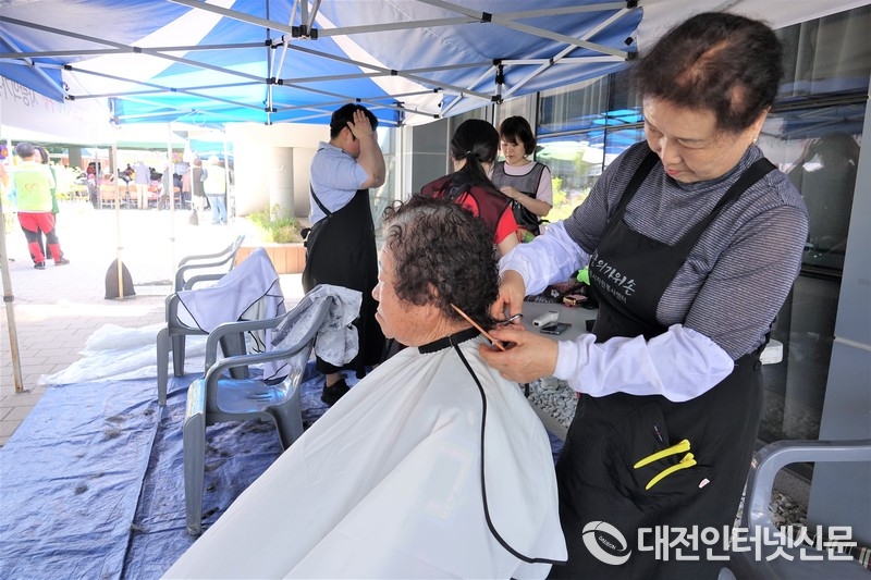 세종시자원봉사센터 전문봉사단의 이미용 서비스. [사진-대전인터넷신문]