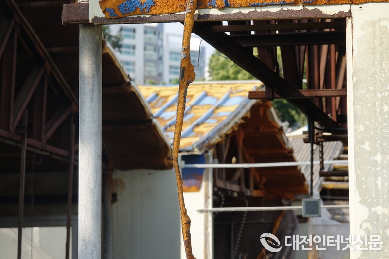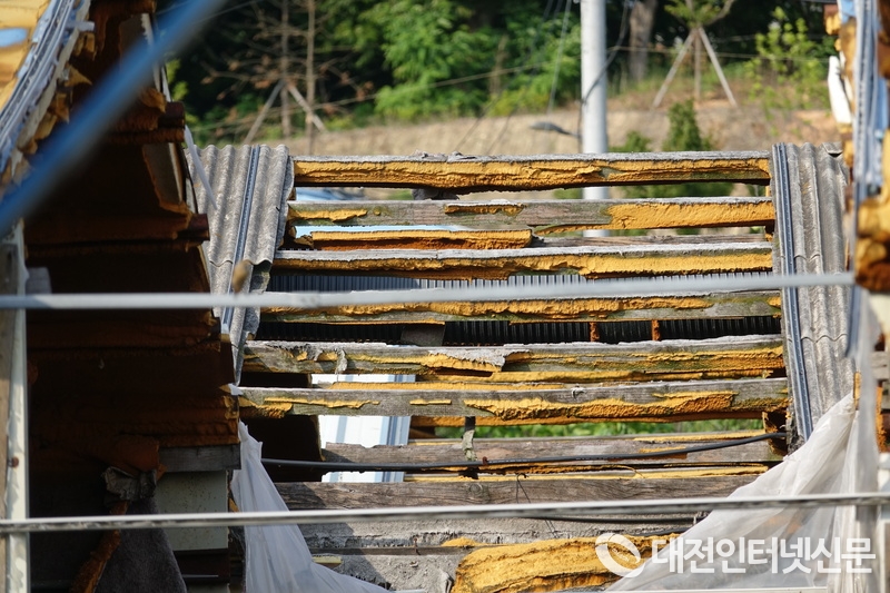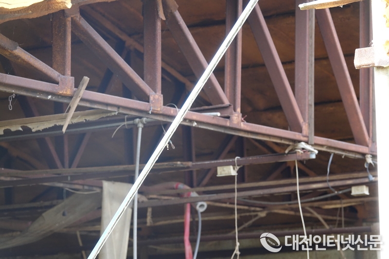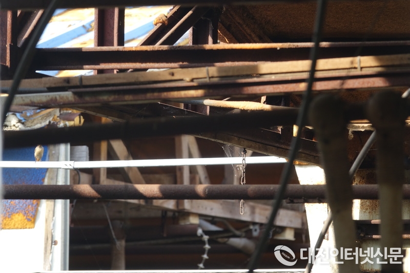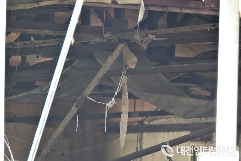 외벽과 천정이 붕괴되고 있는 돈사. [사진-대전인터넷신문]